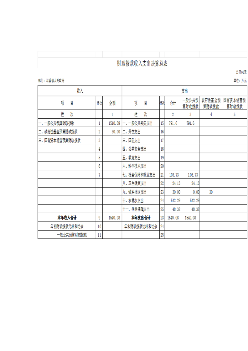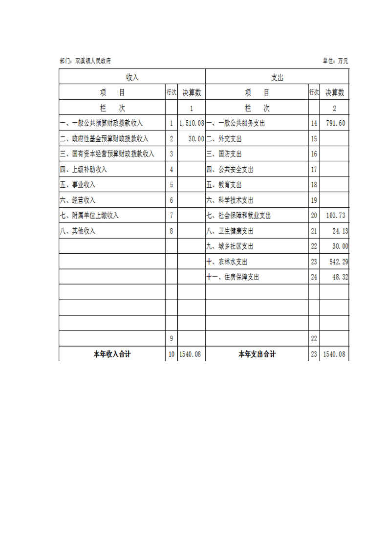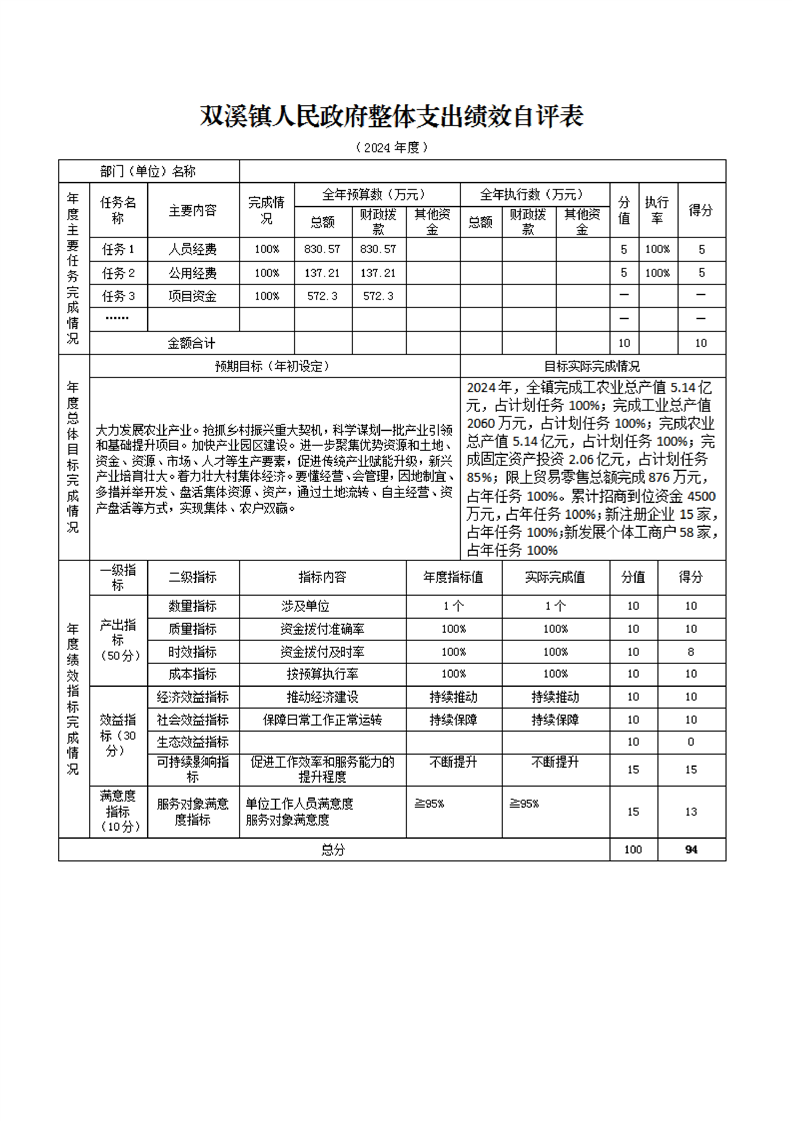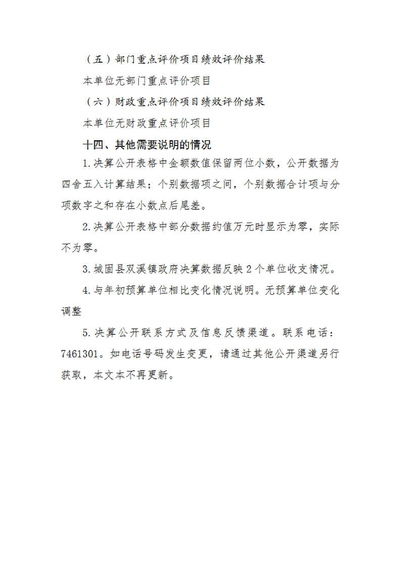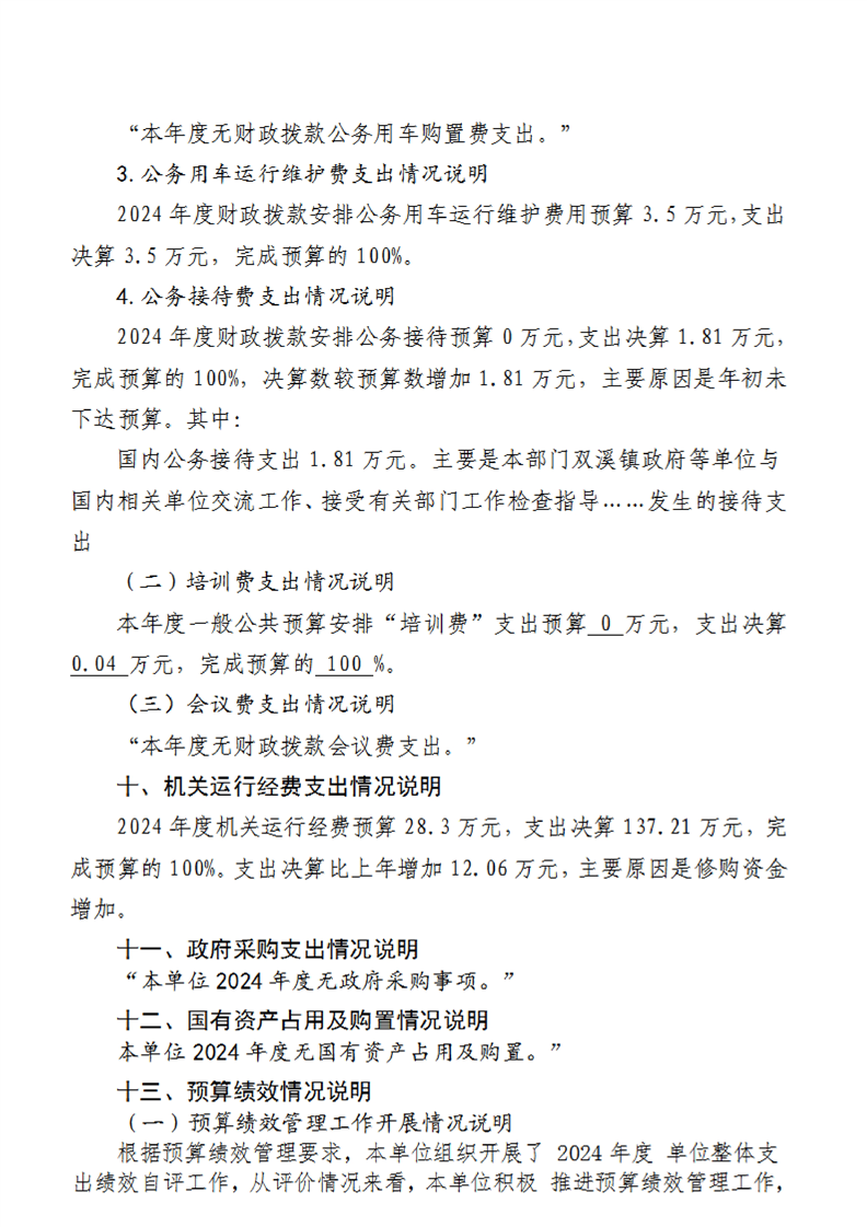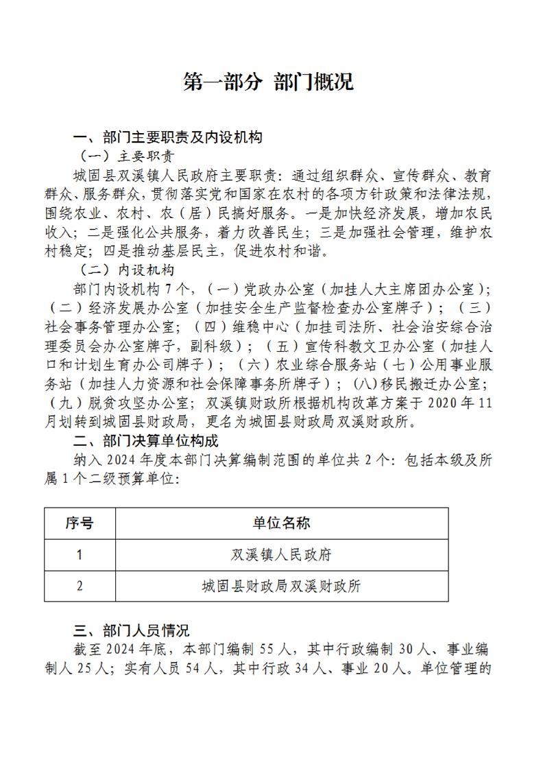 城固縣雙溪鎮人民政府2024年部門決算