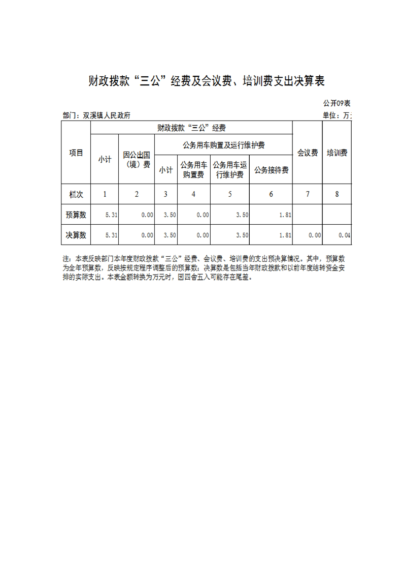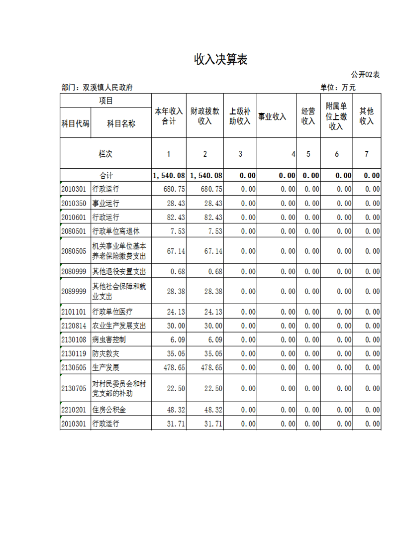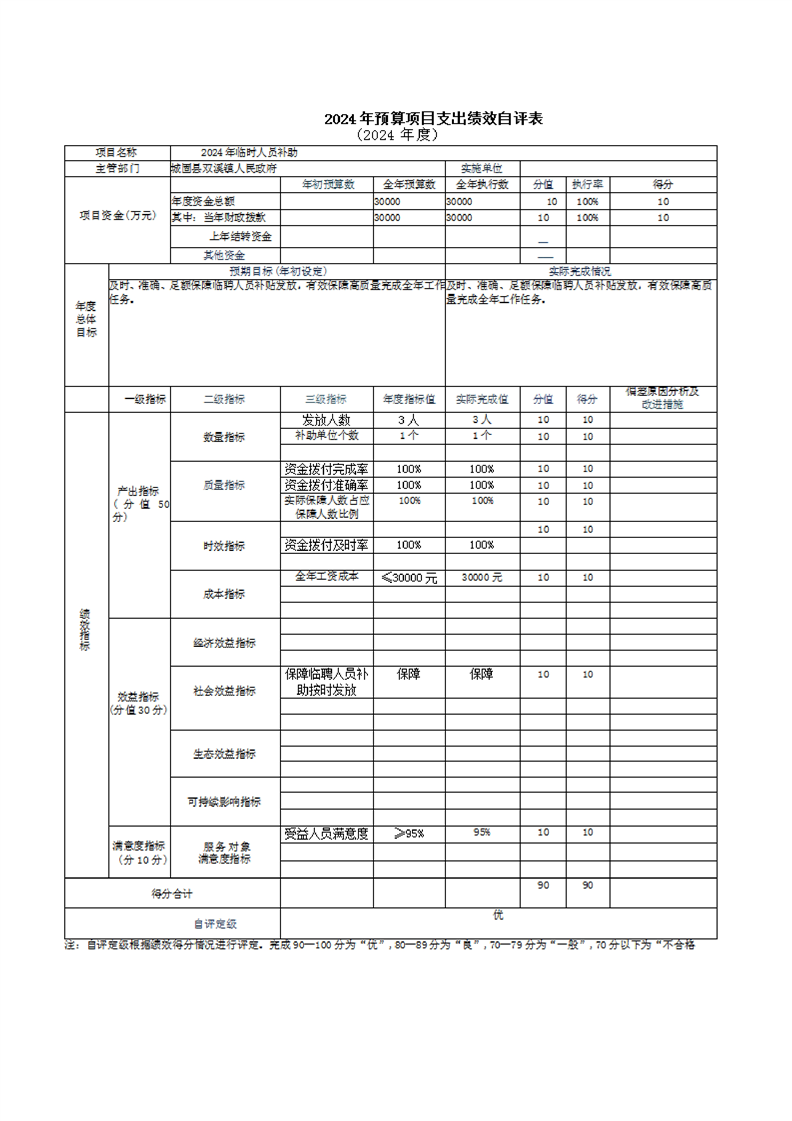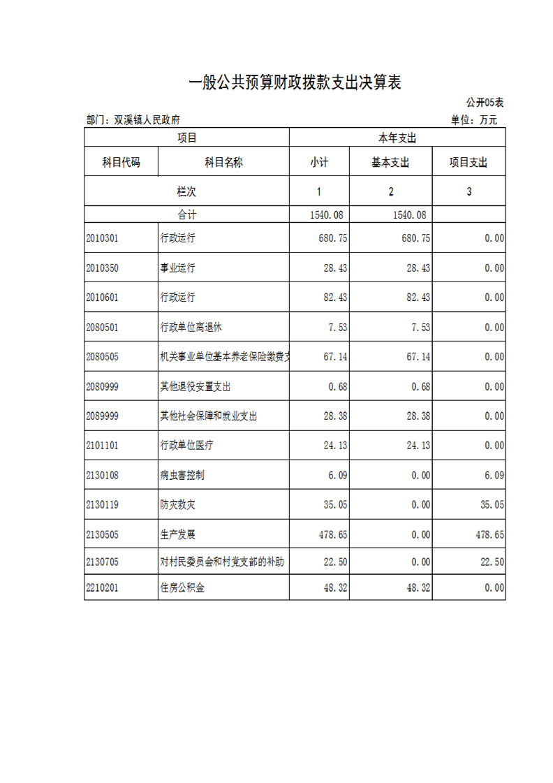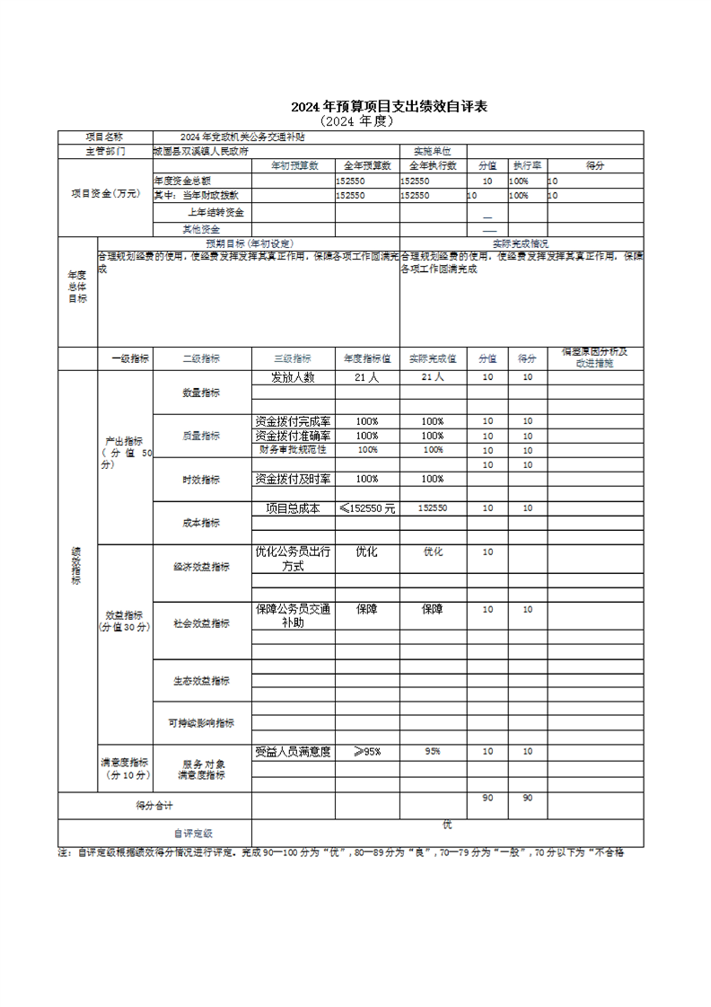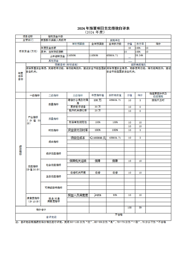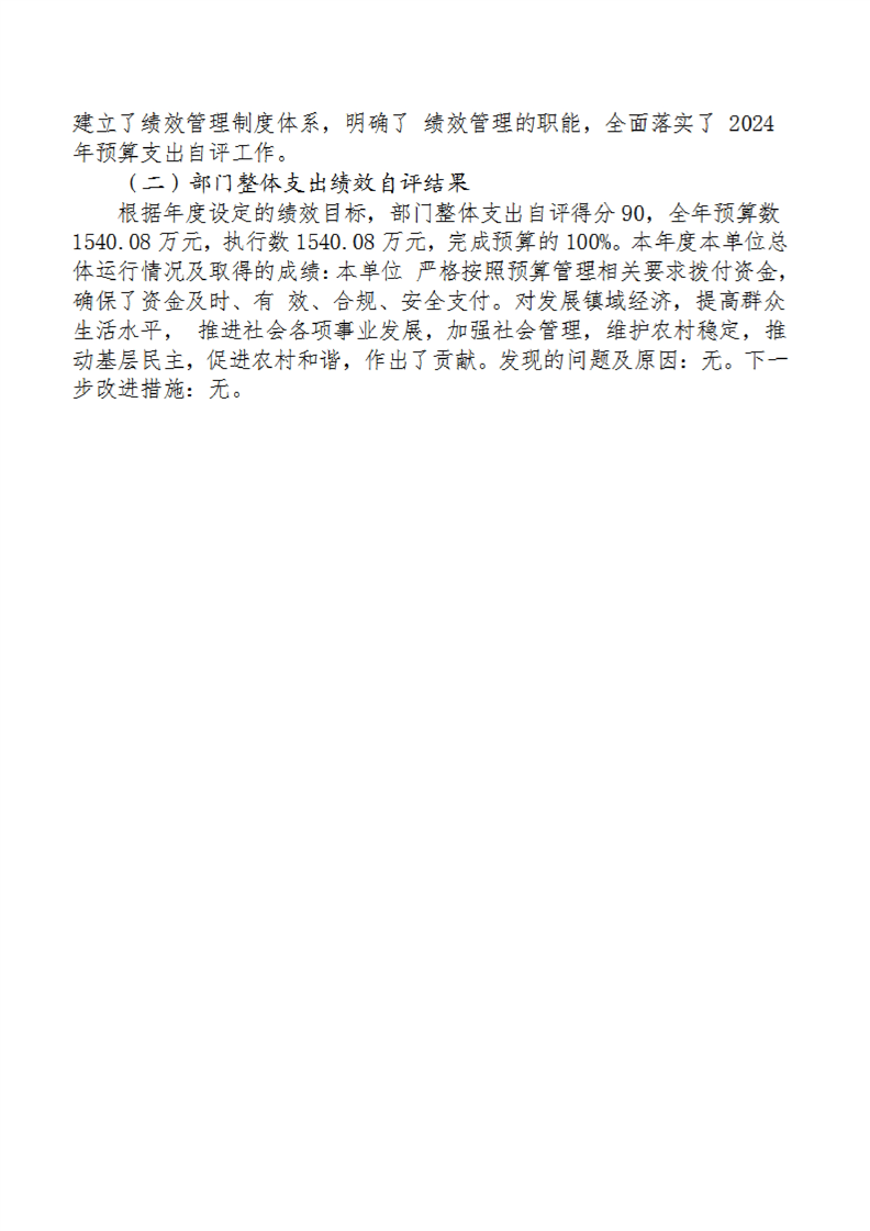城固縣雙溪鎮人民政府2024年部門決算