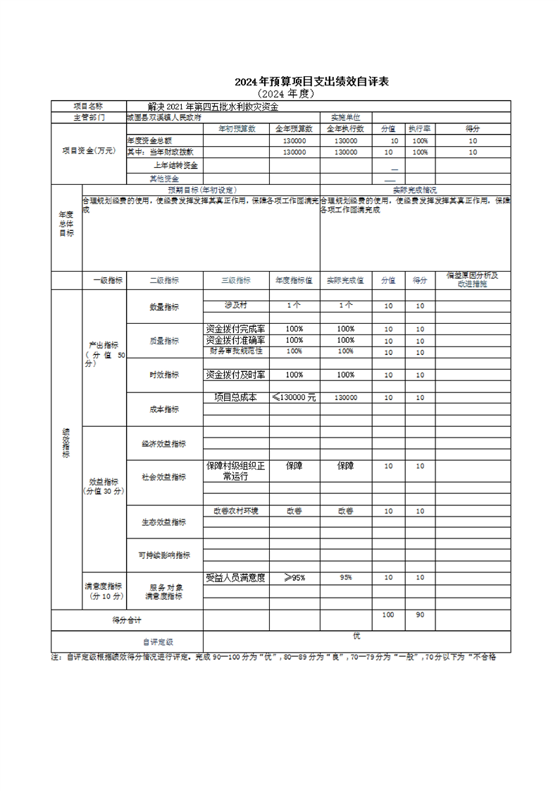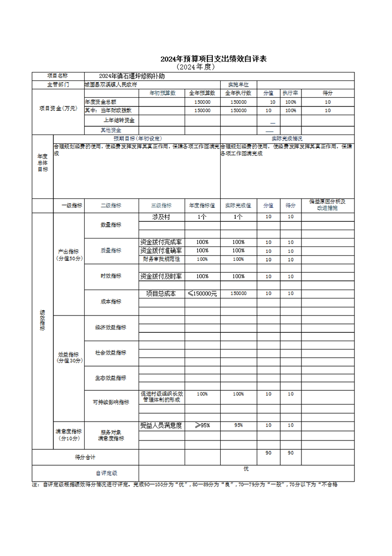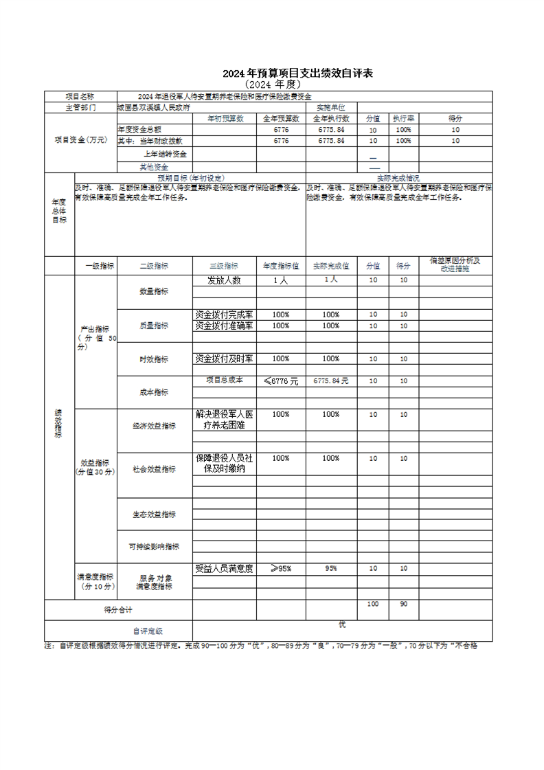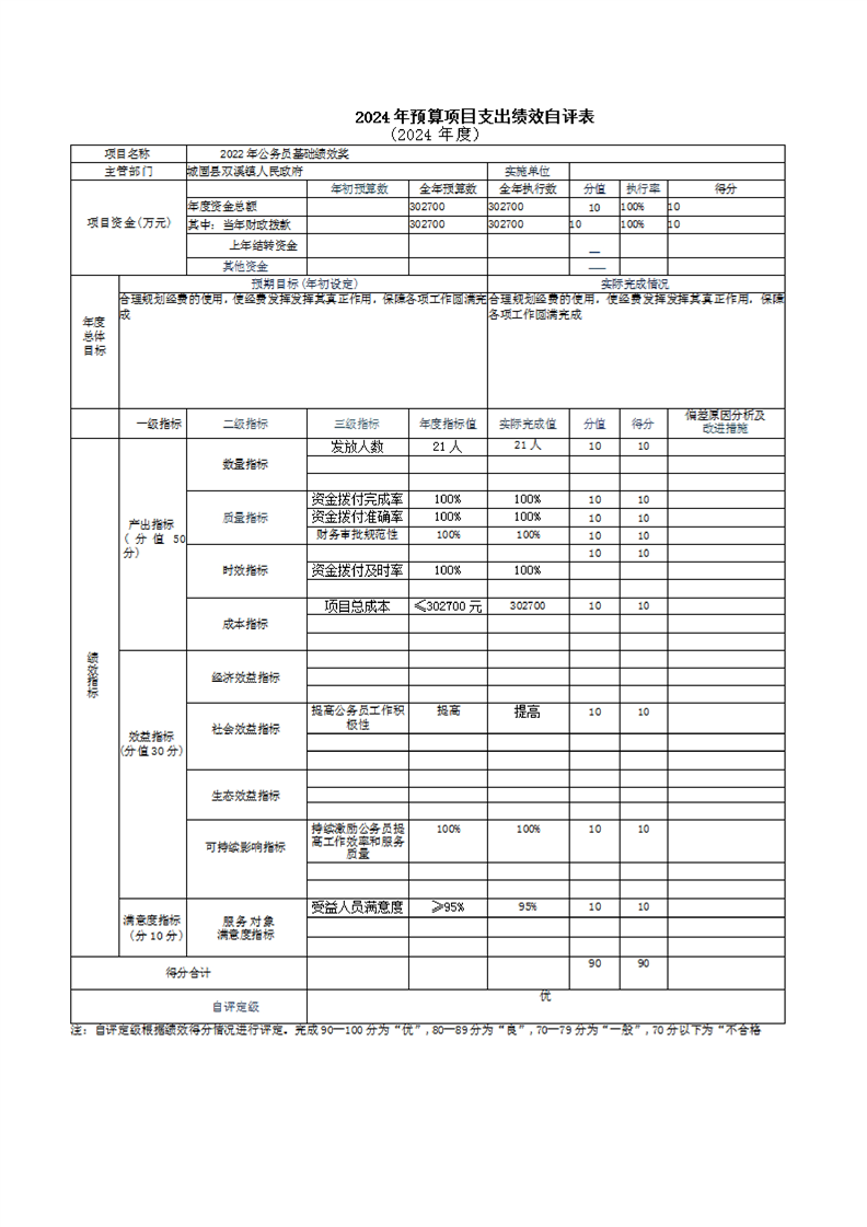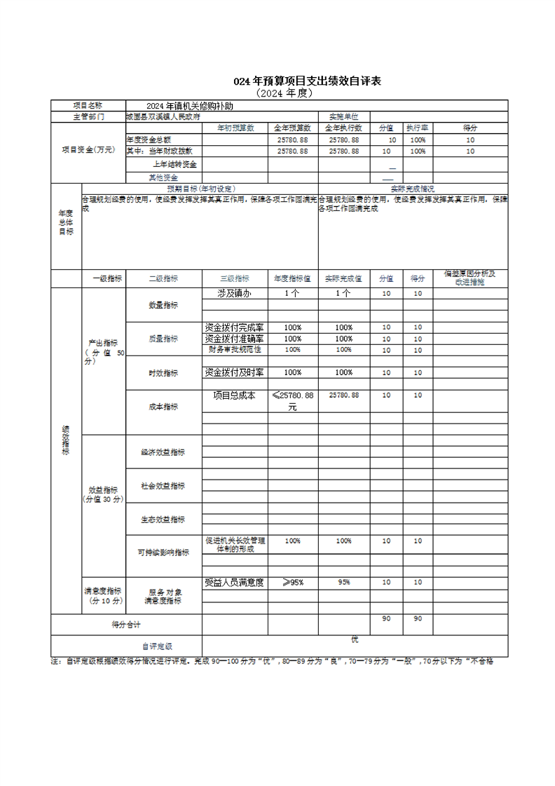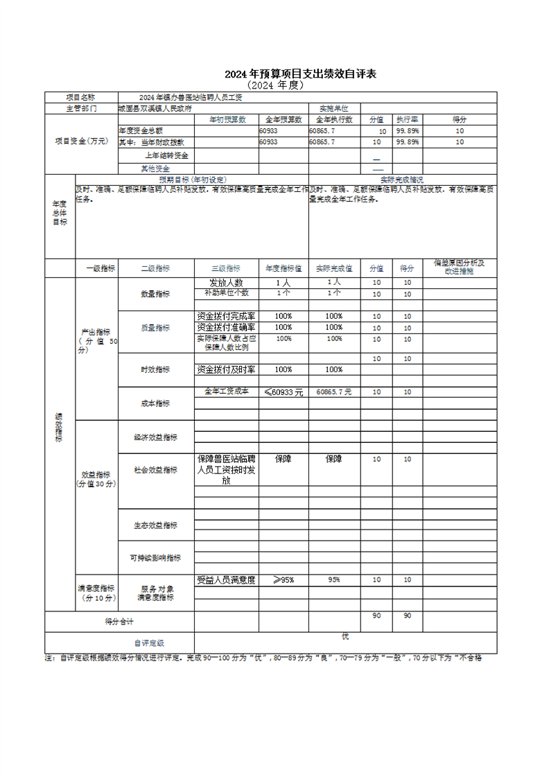 城固縣雙溪鎮人民政府2024年部門決算