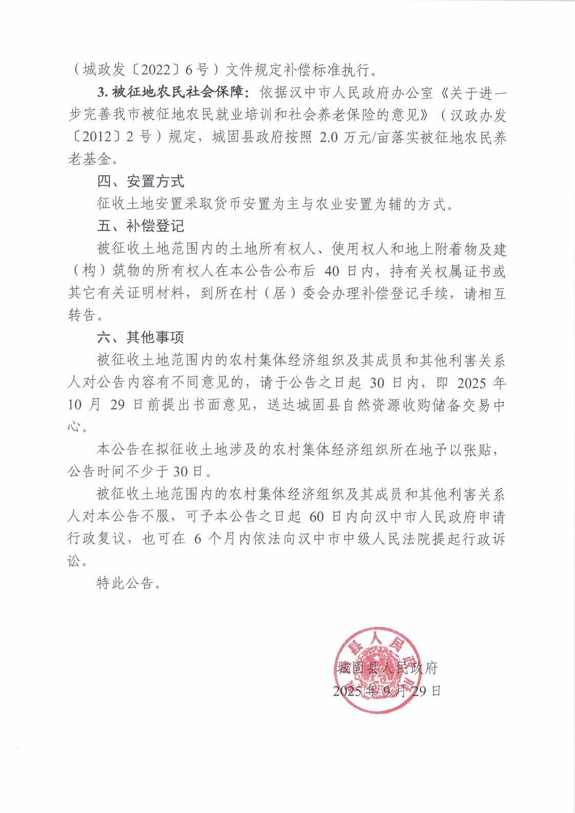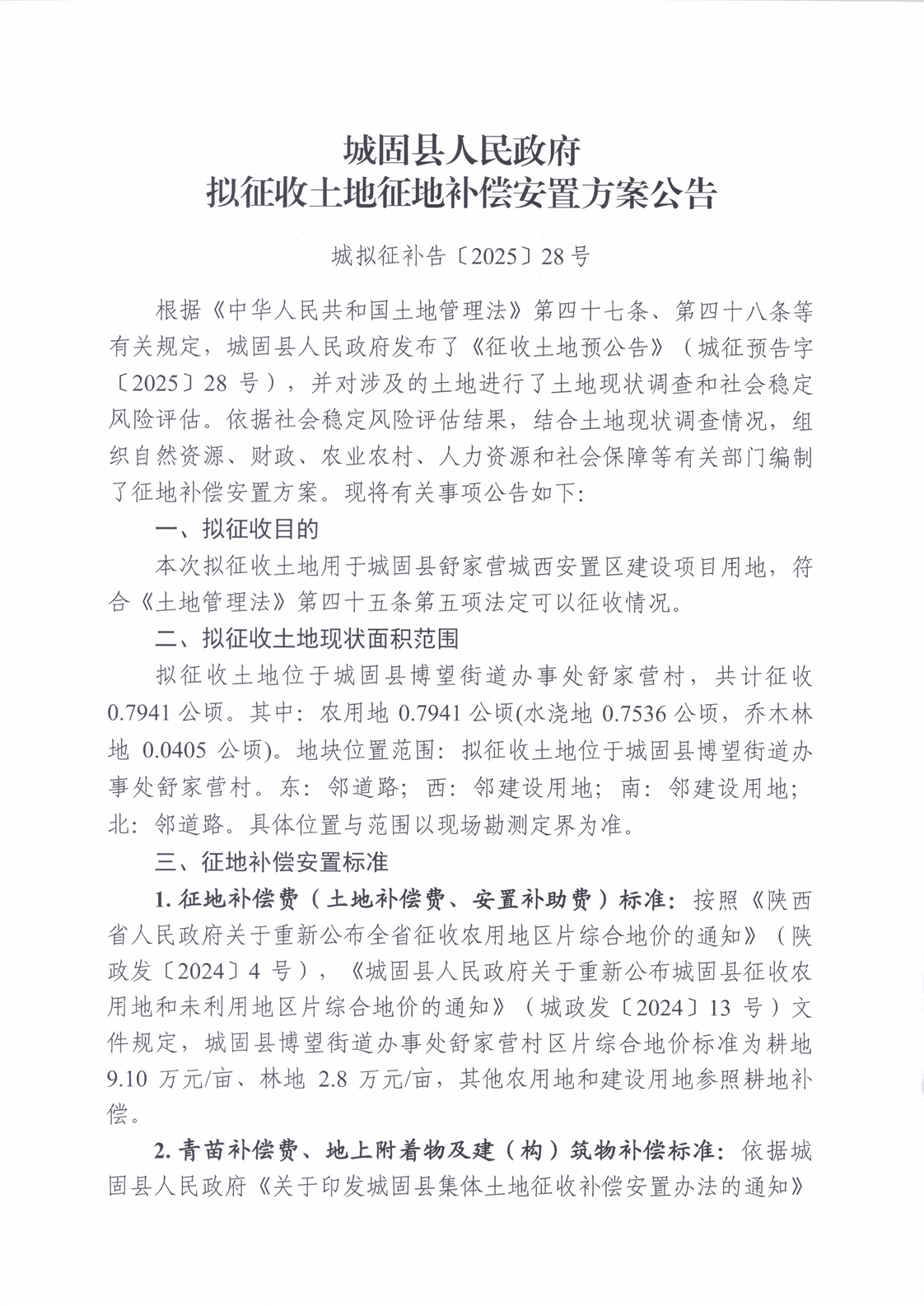 城固縣人民政府擬征收土地征地補償安置方案公告(28號)