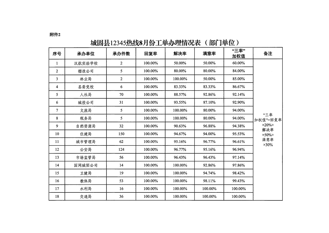城固縣12345熱線8月份工單辦理情況表(鎮(zhèn)、街道)