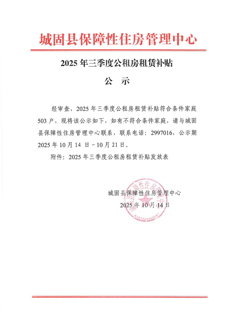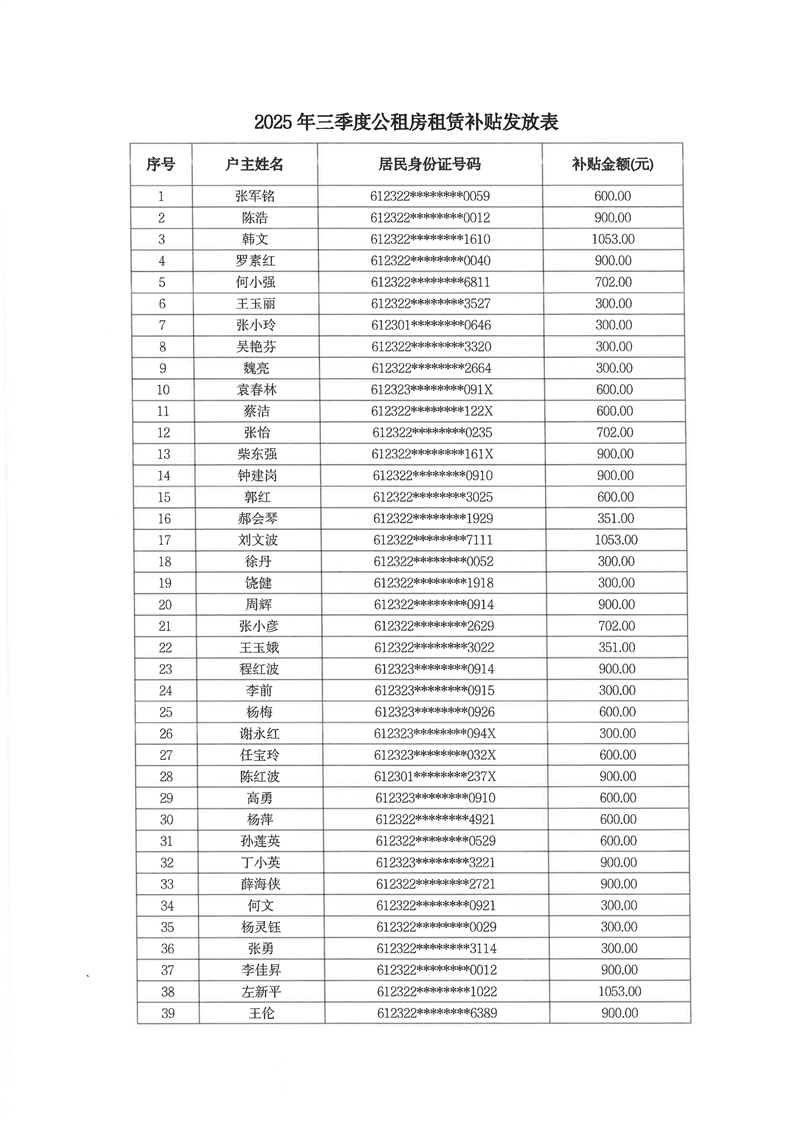 保障性住房管理中心2025三季度公租房租賃補貼公示